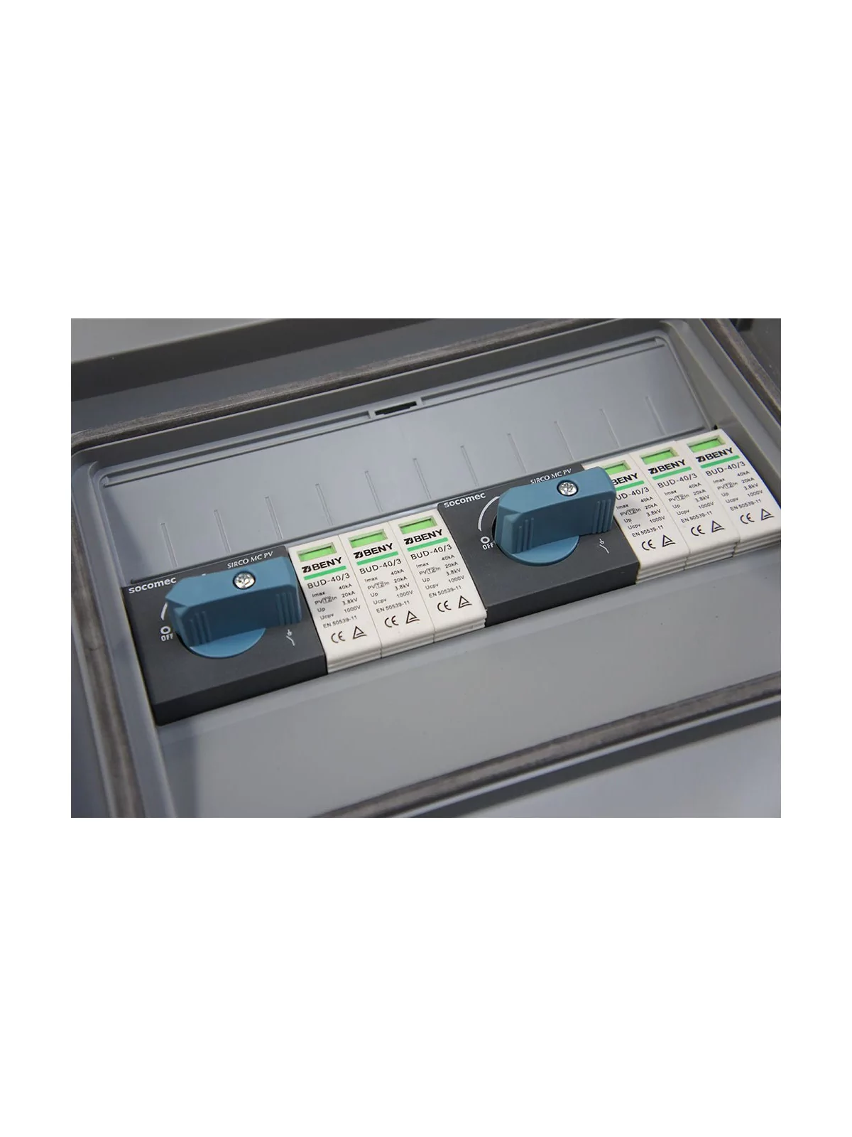 The box ensure the parallel of 2 sets of panels and protect the inverter against lightning ( inverter with 2 MPPT < 3kWc per entry).