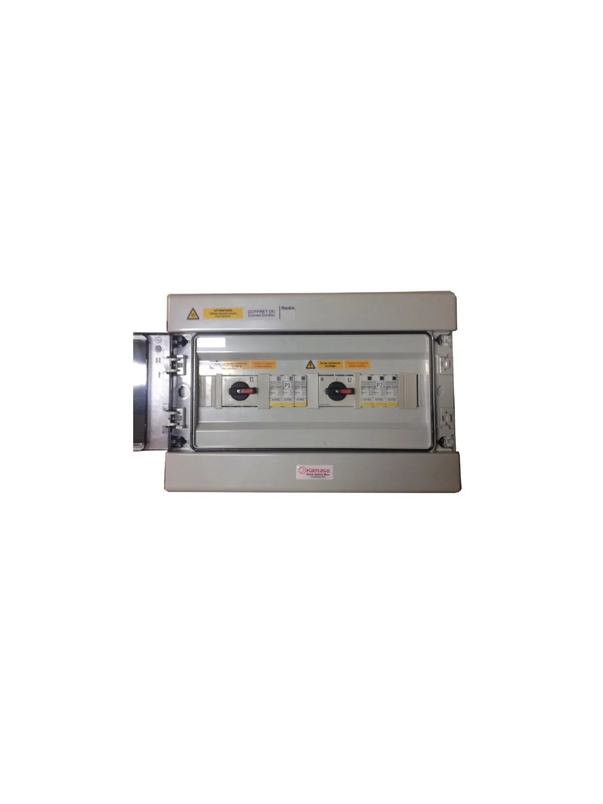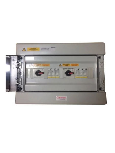 • DC box equipped for 2 inverters with two switch disconnectors of the brand Kraus & Naimer. It is quick and convenient to install because it is equipped with Wago spring terminals that facilitate connection to the inverter. Two DC surge arrester protect the system.