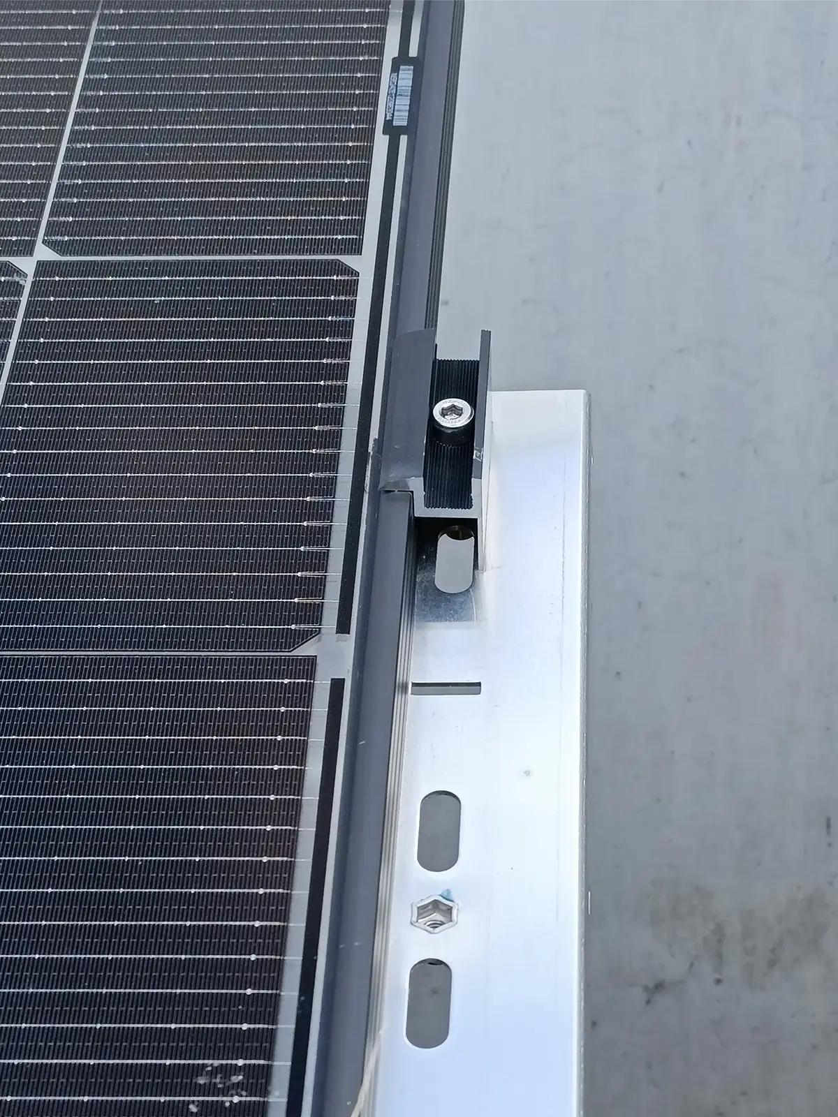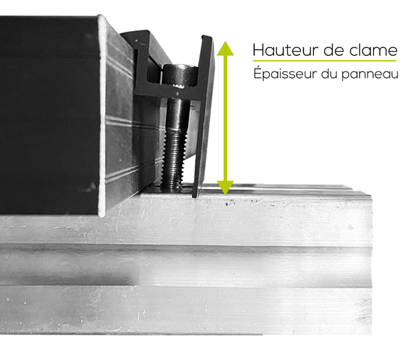 Clam for fastening. The height of the clam must correspond to the thickness of the panel frame: please choose the clam height in the options: from 28 mm to 50 mm.