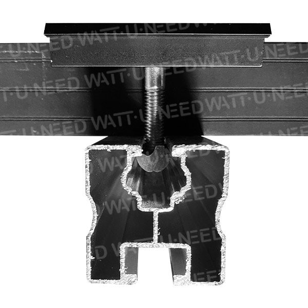 This device is fixed to the aluminium rail with a bolt and nut ( supplied), facilitating quick and standardised installation.