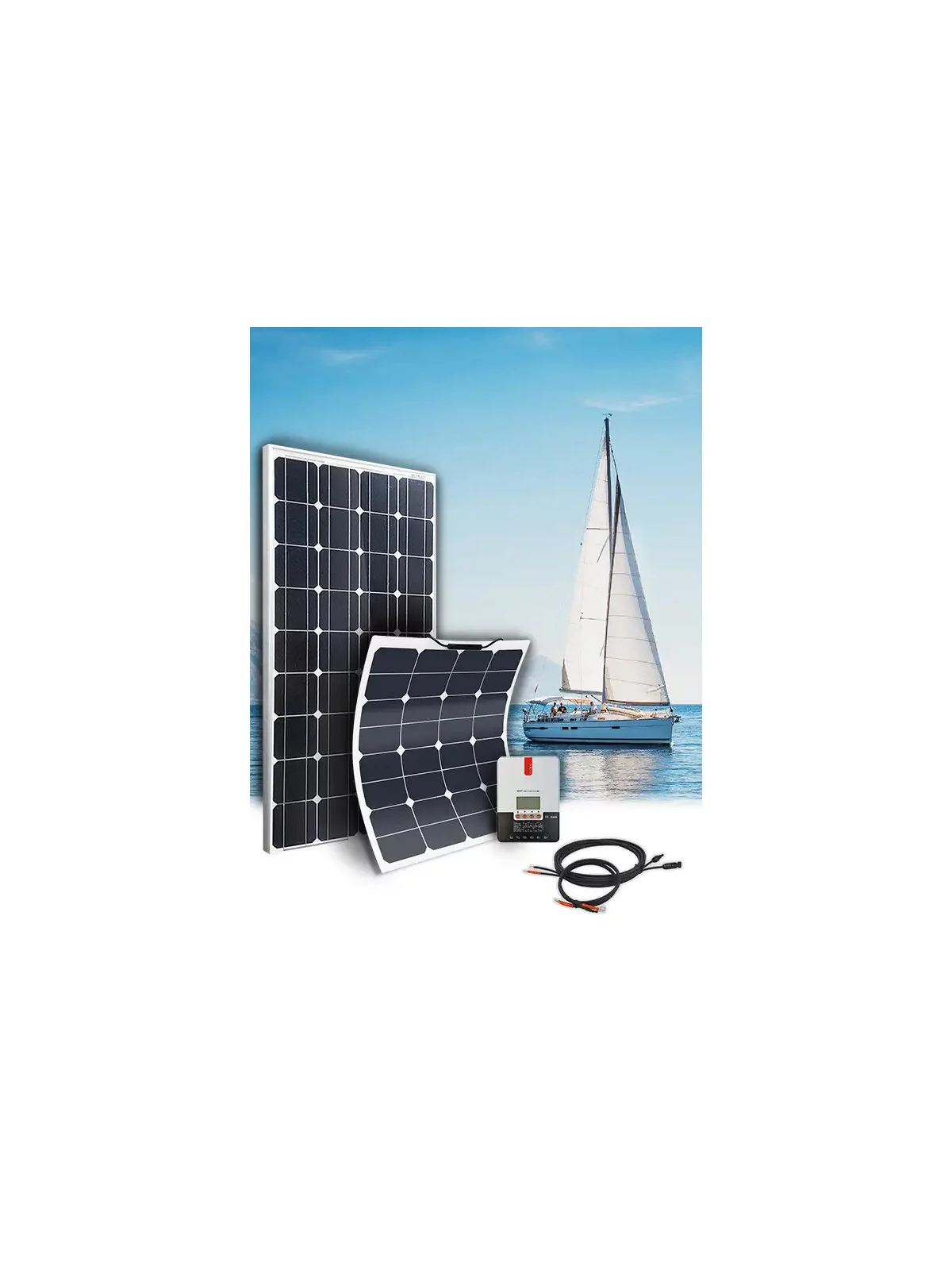 The kit recharges the auxiliary battery during the day, ensuring full autonomy, or a significant top-up when mooring or resting. For optimum efficiency, the kit can be completed with a battery coupler, enabling the alternator to recharge the auxiliary battery when the engine is running and the starter battery is charged.