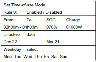 2. Up to four rules can be defined, and each rule can be activated or deactivated separately for charging or discharging