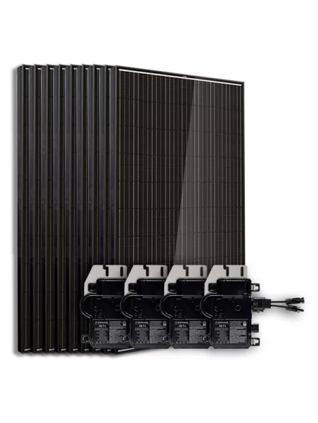 The basic kit contains 12 solar panels, 12 Enphase microinverters and the solar cable to connect the panels to the inverter (the mounting system, cabling and protections can be modified to suit your needs).