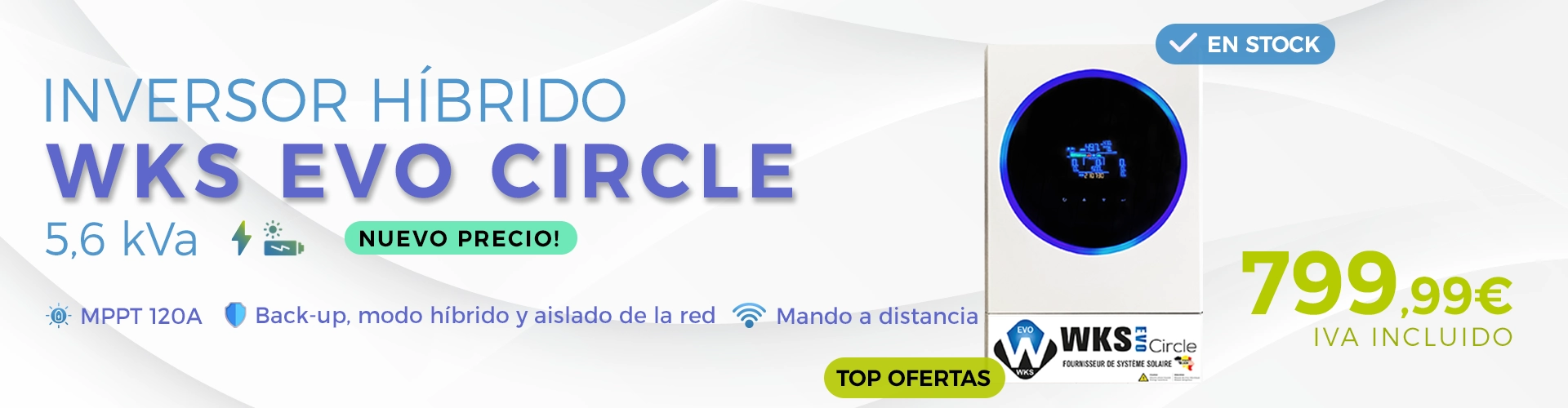 Ejemplos de inversores híbridos: Sofar Solar y WKS EVO MAX II, fondo gris