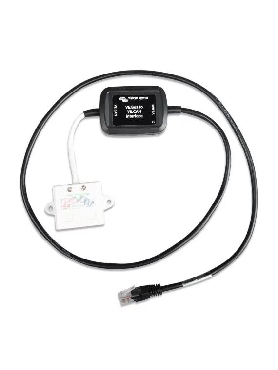 Esta interfaz se utiliza en sistemas Hub-1 con realimentación de red. Actúa como interfaz entre el sistema VE.Bus y uno o varios cargadores solares MPPT con conexión VE.Can: el MPPT 150/70 y/o el MPPT 150/85.