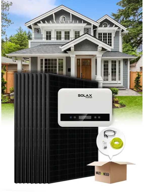 El kit básico incluye 10 paneles solares, un inversor monofásico SolaX X1 Mini 3.0 y cables solares para conectar los paneles al inversor. (El sistema de montaje, el cableado y las protecciones se pueden ajustar para satisfacer tus necesidades).