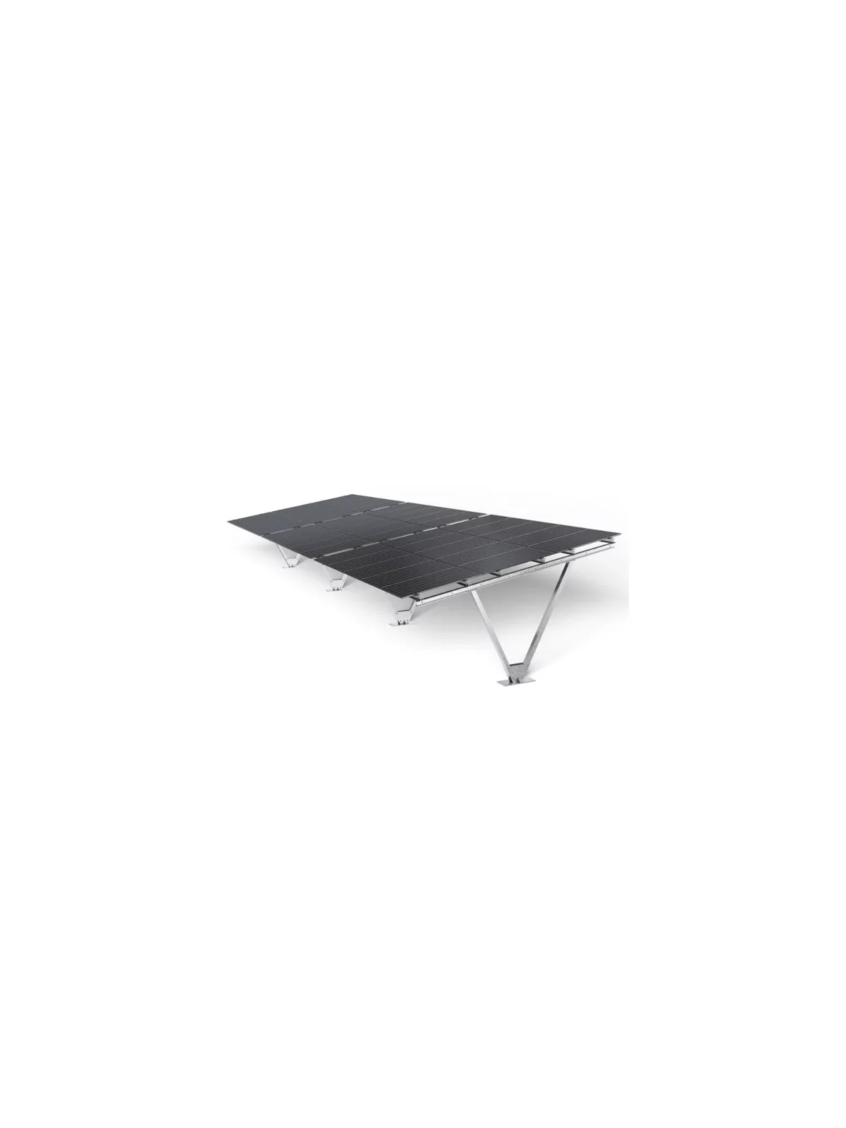 Estructura de acero de alta calidad con revestimiento de magnesio y aluminio, de montaje rápido y sencillo, para resguardar su coche. Número de módulos fotovoltaicos: 15 módulos, orientados verticalmente en 3 filas.