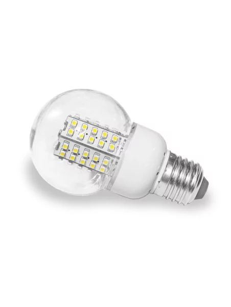 Ampoule LED smd 12/24V E27 4W (rendu 40W incandescent) à grande durée de vie en forme de globe de dimension et consommation réduite.