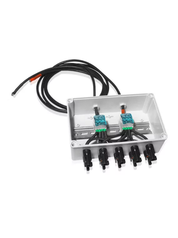 Ce coffret de jonction permet la connexion en parallèle jusqu'à 5 string de modules photovoltaïques.