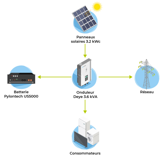 Pour vous aider à mieux comprendre comment intégrer un onduleur hybride dans votre projet énergétique, nous avons préparé quatre exemples concrets d'installations adaptées à différents besoins. Ces exemples vous permettront de visualiser les possibilités et d'estimer les coûts associés.