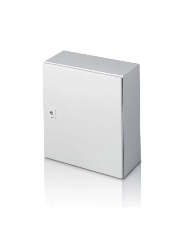 Matériau: Coffret en tôle d’acier, joint d’isolation en polyuréthane moulé «in situ» sur le pourtourFinition: Corps de l’armoire et porte: apprêt par trempé électrophorèse et revêtement poudre extérieur, laque texturée, plaque de support zinguéeCadre de protection contre les contacts: Laque texturée