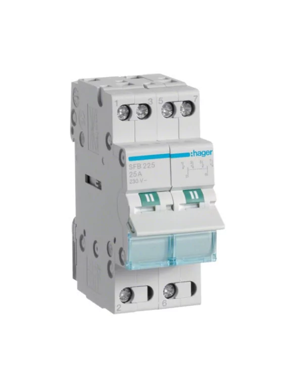Inverseur modulaire 2 pôles : 25A. Point commun aval, I-0-I