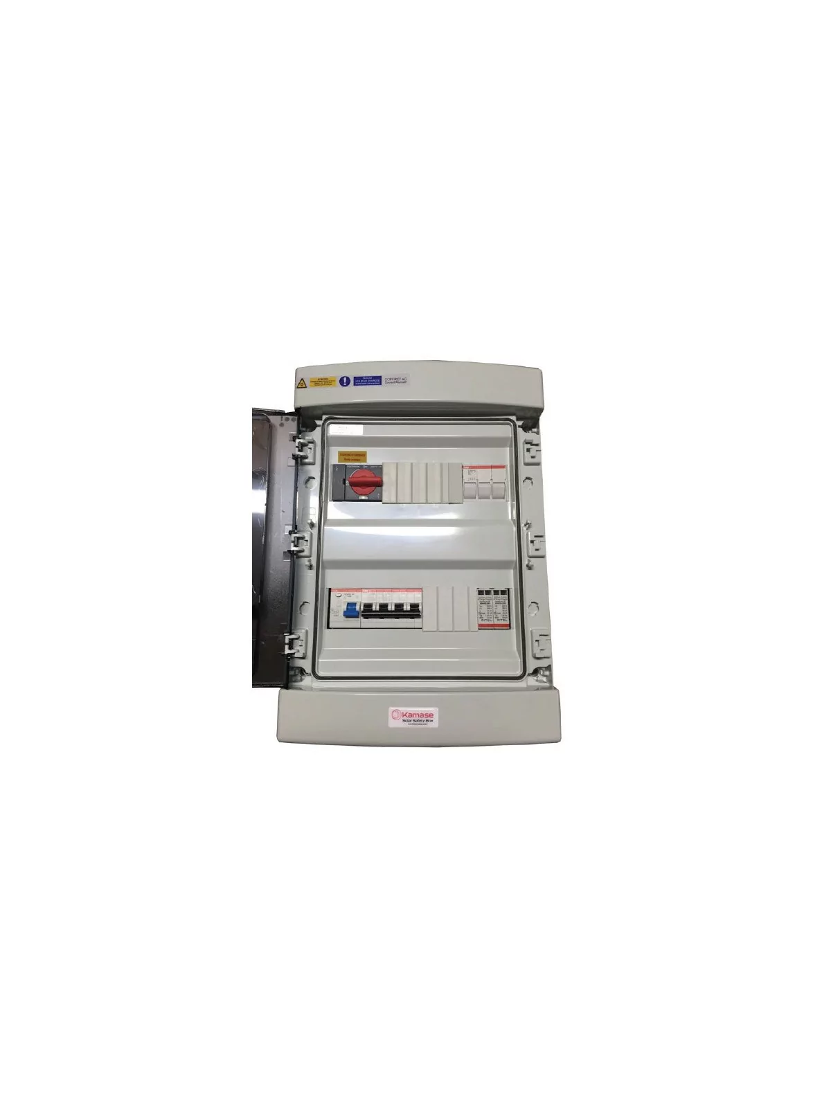 Le Coffret Parafoudre Triphasé Kamase, conforme à la norme C15.712.1, est pré-câblé et prêt-à-poser. Compact et robuste (2x12 modules, IP65), il protège vos installations contre les surtensions et la foudre, avec un disjoncteur différentiel, un porte-fusibles et un parafoudre Type 2.