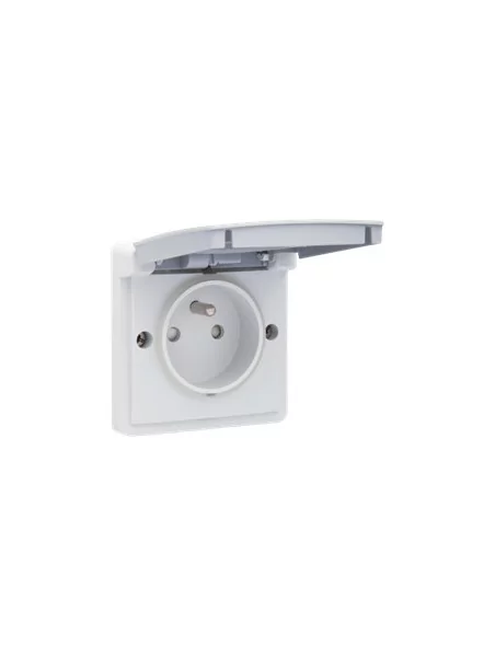 Cette prise de courant en saillie est équipée d'une broche terre, d'une sécurité-enfants, avec bornes à vis et d'un clapet de protection à charnières. Le mécanisme est placé dans un boîtier en saillie étanche aux projections d'eau. Idéal pour les environnements humides ou exigeants.