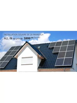 Installation solaire de 20 panneaux ALL-IN. Bénéficiez de notre installation 'sans soucis' qui vous garantit une installation simple et fonctionnelle