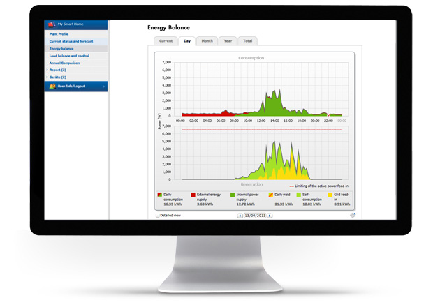 La combinaison du Sunny Portal Professional Package et du Sunny Home Manager convient parfaitement pour la surveillance professionnelle d'installations photovoltaïques de 5 kWc à 50 kWc. Les utilisateurs peuvent lire les valeurs de mesure DC et AC les plus importantes des onduleurs photovoltaïques et obtenir ainsi des informations sur la puissance et la production. Grâce au Sunny Portal Professional Package, les données d'installation sont représentées avec une résolution de 5 minutes et offrent aux utilisateurs des informations encore plus détaillées. Via le bilan énergétique détaillé, les exploitants d'installation peuvent analyser encore plus précisément leur consommation énergétique quotidienne et avoir de nombreuses informations sur leur comportement de consommation.