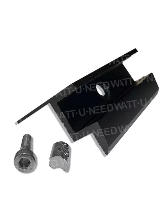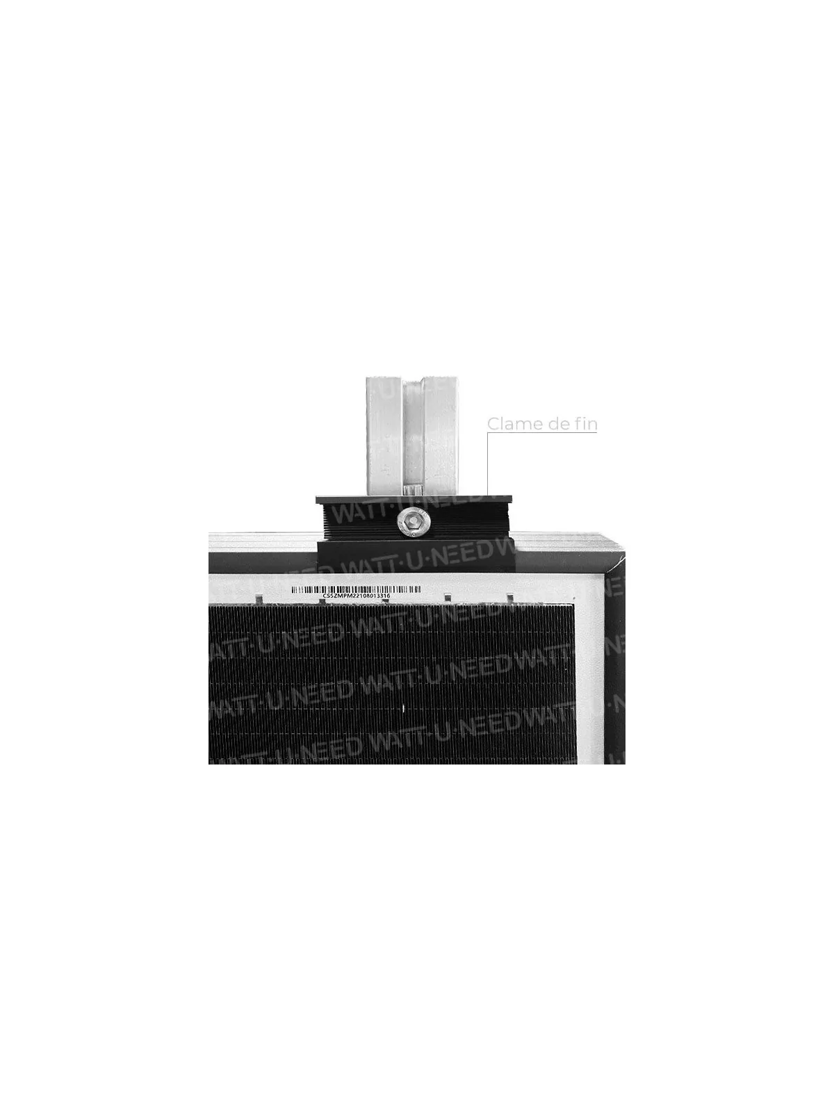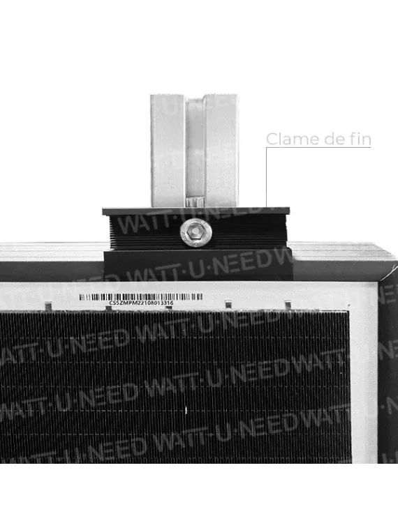 Cette clame se fixe sur le rail en alu avec boulon et écrou (fournis)Choisir la hauteur de la clame dans les options avant commande.