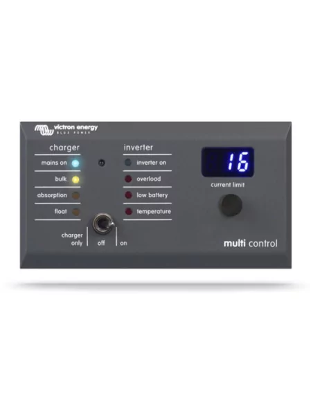 Le tableau de commande numérique Multi Control GX est un tableau de contrôle à distance conçu pour travailler avec tous les systèmes Multi / Quattro. Ceci comprend les configurations autonome, parallèle et biphasée ou triphasée. Aussi bien les systèmes VE.Bus que les non VE.Bus sont compatibles.