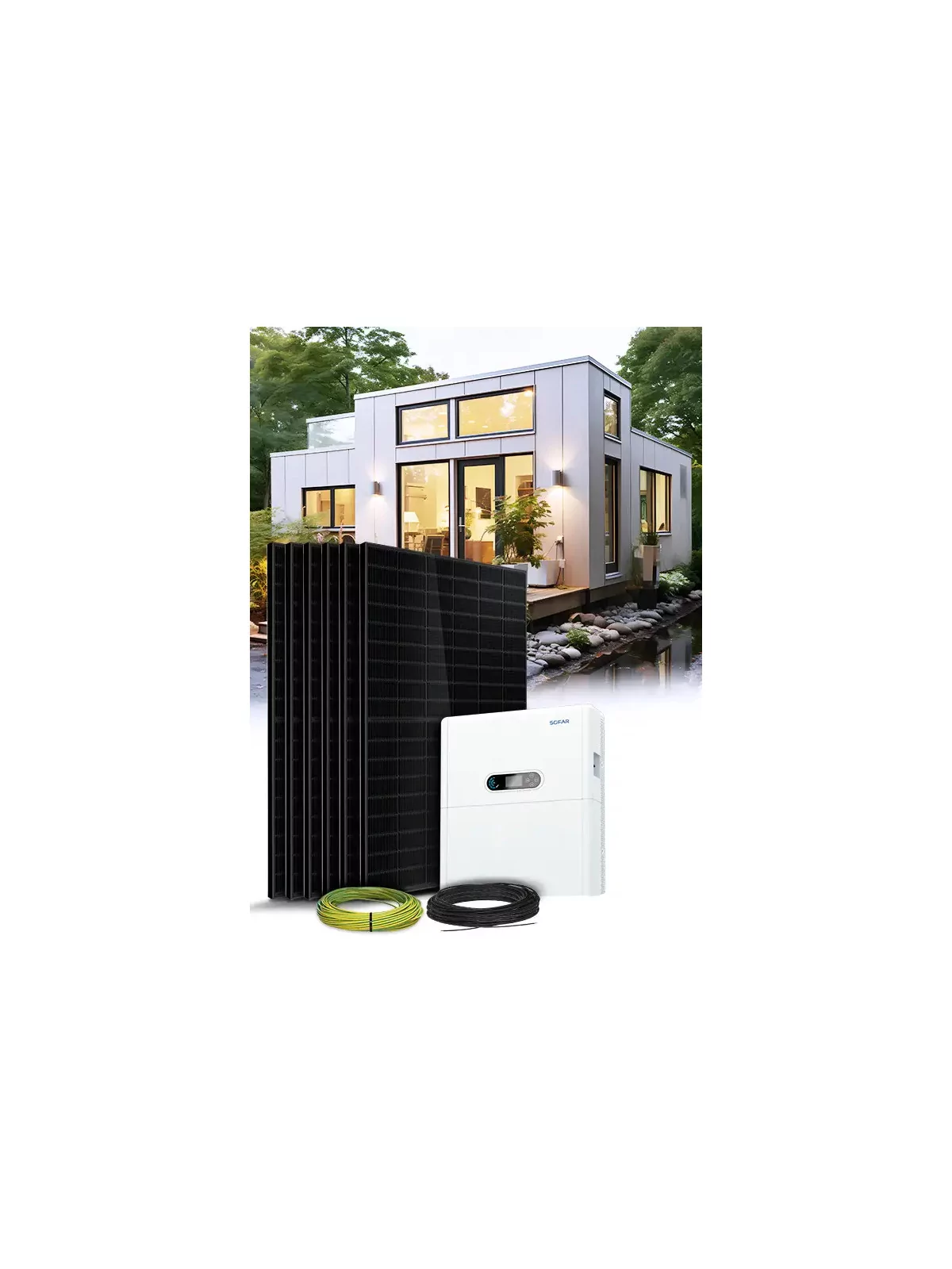 De basiskit bevat 6 zonnepanelen, een Sofar Solar ESI 3 kVA - ESI-3K-S1 hybride omvormer, een Sofar Solar BTS 5K lithiumbatterij, zonnekabels om de panelen met de omvormer te verbinden en een optioneel montagesysteem voor de panelen. (Zowel het montagesysteem als de bekabeling en beveiligingen kunnen naar wens worden aangepast).