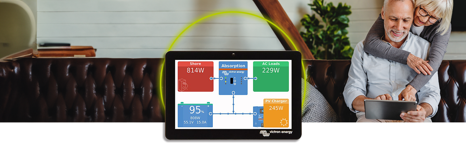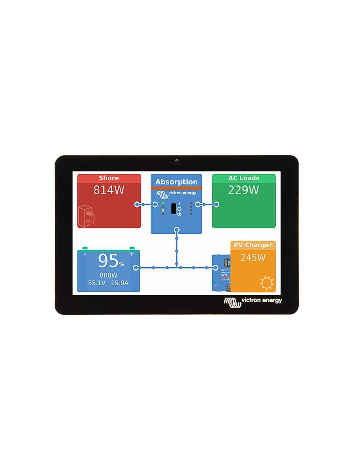 De GX Touch 50 accessoire is een scherm voor uw Cerbo GX. Dit 7-inch touchscreen geeft u direct overzicht over uw systeem en stelt u in staat om instellingen razendsnel aan te passen. Het ultradunne, waterdichte ontwerp maakt verbinding met de Cerbo GX met slechts een kabel mogelijk en is eenvoudig te installeren. De eenvoudige installatie biedt u bovendien veel flexibiliteit als u een overzichtelijk dashboard wilt creëren.